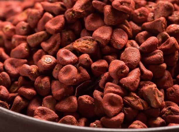 Если же речь идет об использовании аннато как приправы, то есть, когда добавка вводится в блюдо в большом количестве, появляется ненавязчивый перечный запах и ореховый привкус с горчинкой.