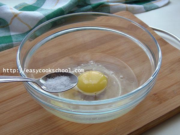 - В глубокую мисочку вбейте яйцо, тщательно расколотите его вилкой, чтобы разошелся желток.