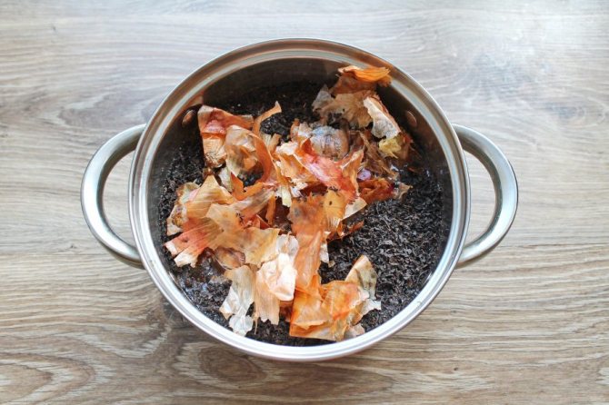 - луковая шелуха (чем больше, тем лучше) около трех полных горстей.
