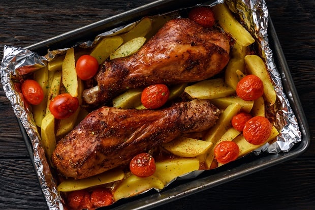 Примечание: в этом рецепте картофель и бедра готовятся вместе, вы же вполне можете приготовить только бедра, а гарнир к ним – отдельно.