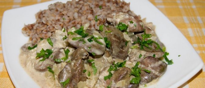 Сметана делает печёнку очень нежной, она просто тает во рту. Кроме того, получается вкусная подливка, которая удачно впишется в любой гарнир. Если обжаривать субпродукт в сливочном масле, то блюдо получится более ароматным с аппетитной корочкой.