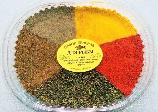 Приправа для жареной рыбы содержит смесь ароматических трав. При приготовлении рыбы на гриле отлично подойдут паприка, шафран, семена горчицы, эстрагон, куркума.