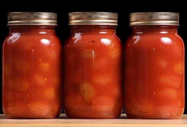 - Простерилизованные банки наполняют отобранными и тщательно вымытыми плотными томатами (с кожицей или без по своему усмотрению).
